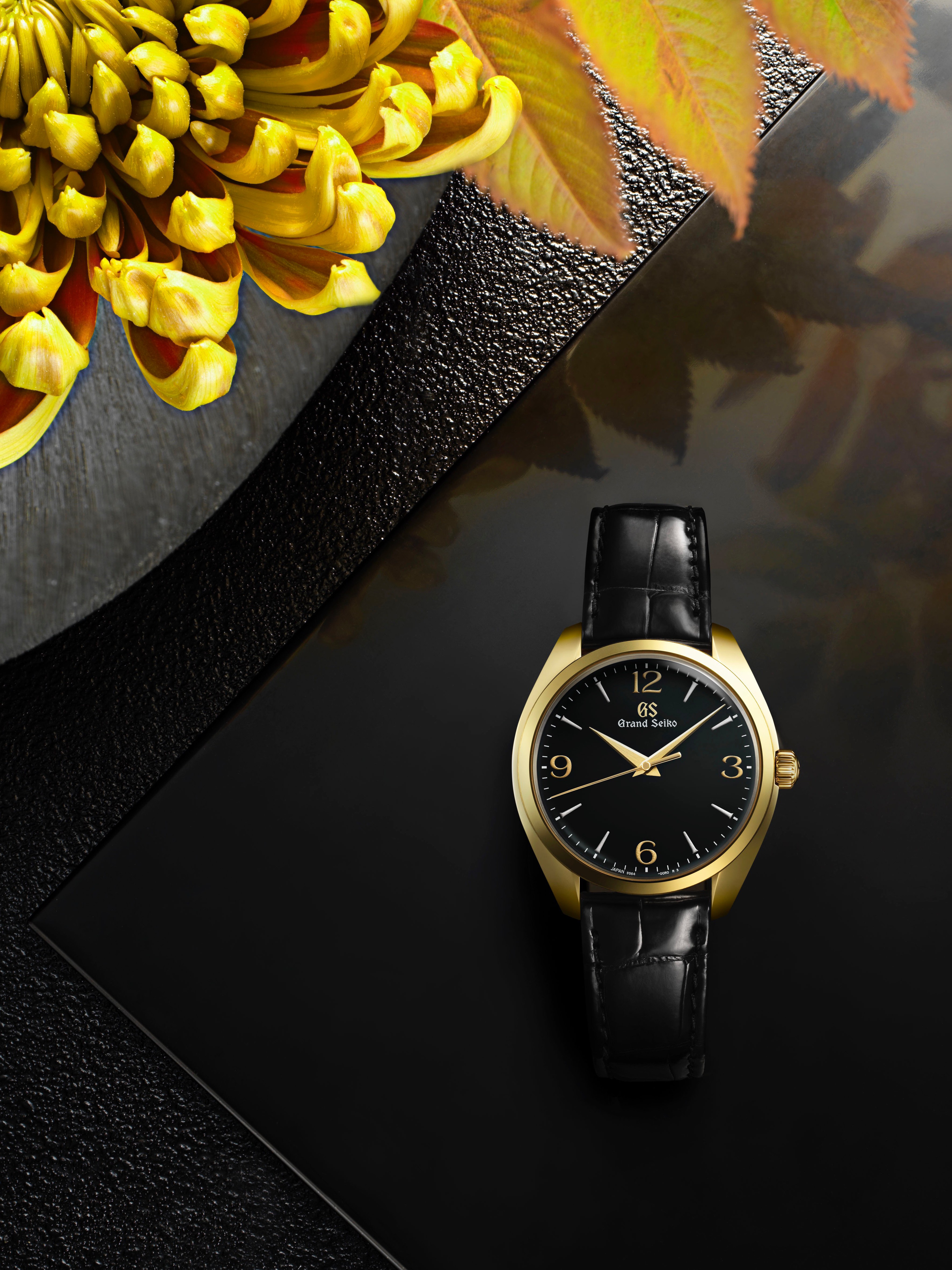 In Japan ist die weit verbreitete Verwendung von Schatten in allen Kunstformen, von Stellschirmen bis hin zur gegenständlichen Malerei, ein klarer Beweis für die Wertschätzung für die Nuancen von Hell und Dunkel. Dies ist vielleicht einer der Gründe für die jahrhundertealte Tradition der japanischen Lackkunst. Die Schönheit des Lacks wird durch den Schatten hervorgehoben und die subtilen Variationen von Licht und Dunkel offenbaren die Tiefe seines schwarzen Glanzes. Wenn Licht auf die Lackierung trifft, treten auch andere Farben aus dem Verborgenen hervor. Die zarte, von Hand gemalte Maki-e-Technik auf den Stundenmarkierungen der SBGW262 sind der perfekte Beweis dafür.