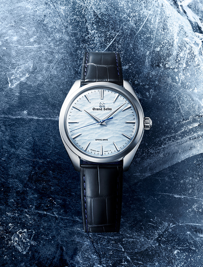 Ob wahr oder nicht, die Legende hat die Handwerker im nahe gelegenen Shinshu Watch Studio dazu inspiriert, ein Zifferblatt von erlesener Subtilität für diesen Spring Drive Handaufzugszeitmesser zu kreieren. Es hat die Farbe, Haptik und Textur des schneebedeckten Eises auf dem Suwa-See.