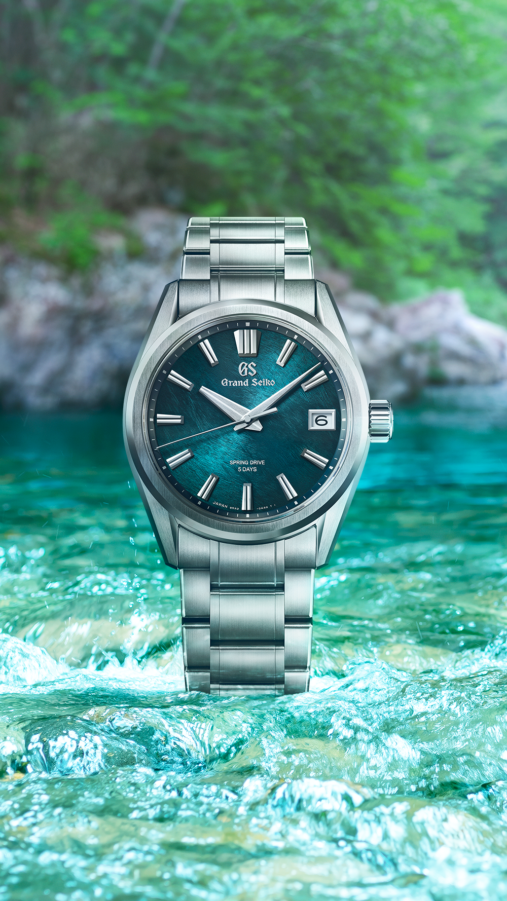 스프링 드라이브 시계가 제작되는 나가노현은 해발 3,000미터가 넘는 산들이 즐비한 지역으로, 이 산들에서 흘러내리는 수많은 강줄기는 오랜 세월 동안 풍요로운 자연 환경을 만들어왔습니다. 이 가운데 아테라 강은 깊은 협곡인 '아테라 계곡'을 형성하며, 숨막히도록 아름다운 풍경으로 잘 알려져 있습니다. 맑고 에메랄드빛으로 빛나는 아테라 강의 물결을 모티브로 한 다이얼은 바닥이 보일 정도로 투명한 시냇물과 여름철 자연의 풍요로운 조화를 떠오르게 합니다. 이 시계의 중심에는 스프링 드라이브 5일 파워리저브 칼리버 9RA2가 탑재되어 있습니다. 완전히 태엽을 감았을 때 최대 120시간(5일)의 파워리저브를 제공하며, ±10초/월이라는 뛰어난 정밀도를 자랑합니다. 이는 태엽으로 구동되는 시계로서는 경이로운 성과입니다.