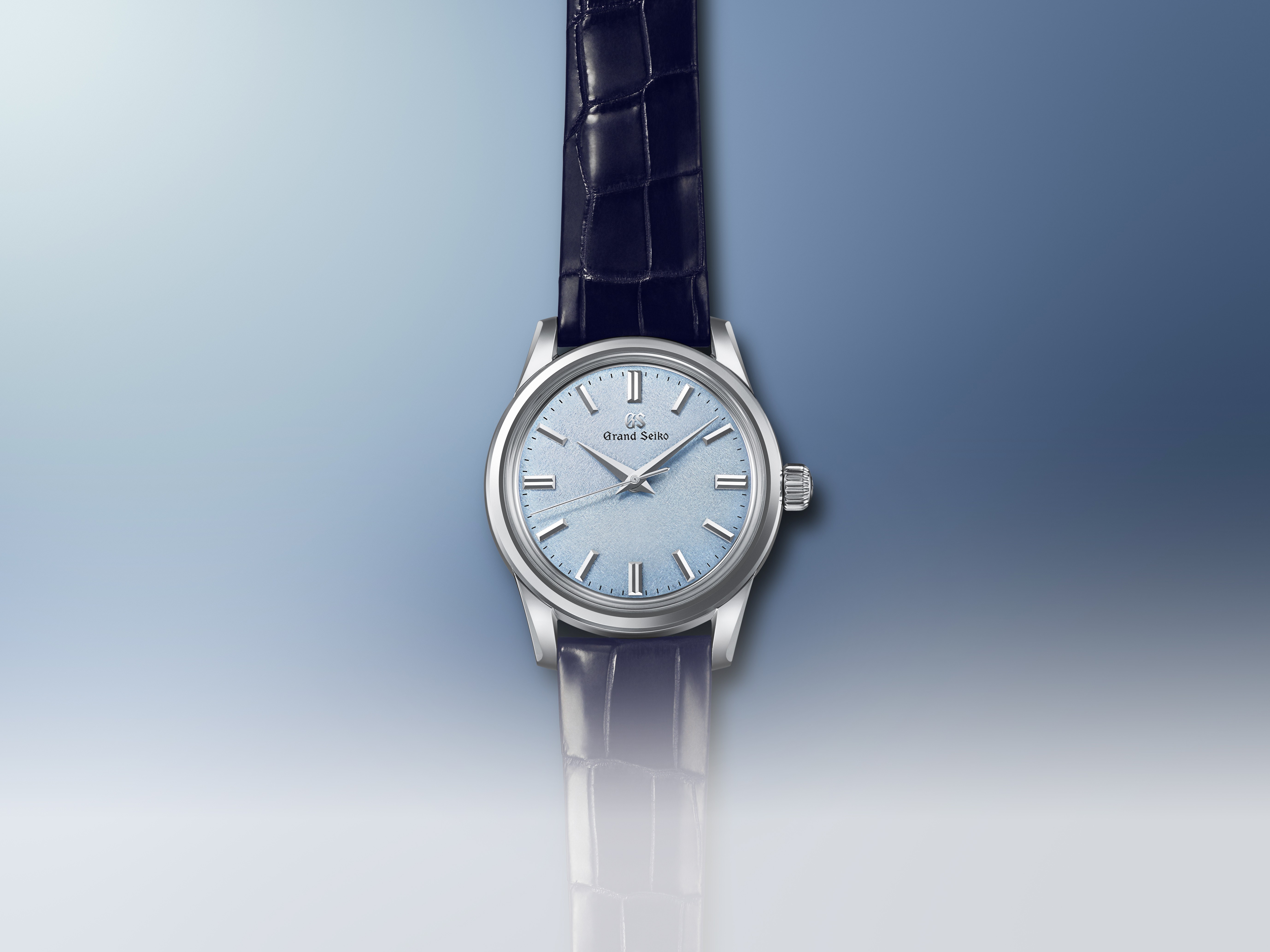 Powered by the slim, hand-wound movement, Caliber 9S64, this watch is the epitome of simple refinement. The dial is simple and clean but, when viewed through the sapphire case back, the intricate perfection of the engineering of the hand-assembled and adjusted movement is abundantly and satisfyingly clear. Thanks to a long mainspring and a balance both made of a proprietary metals, this watch has a high and stable accuracy rate and a power reserve of 72 hours. The dial is in a delicate shade of pale blue, the color of the skies above Mt. Iwate as summer begins, the season known as Kishun.