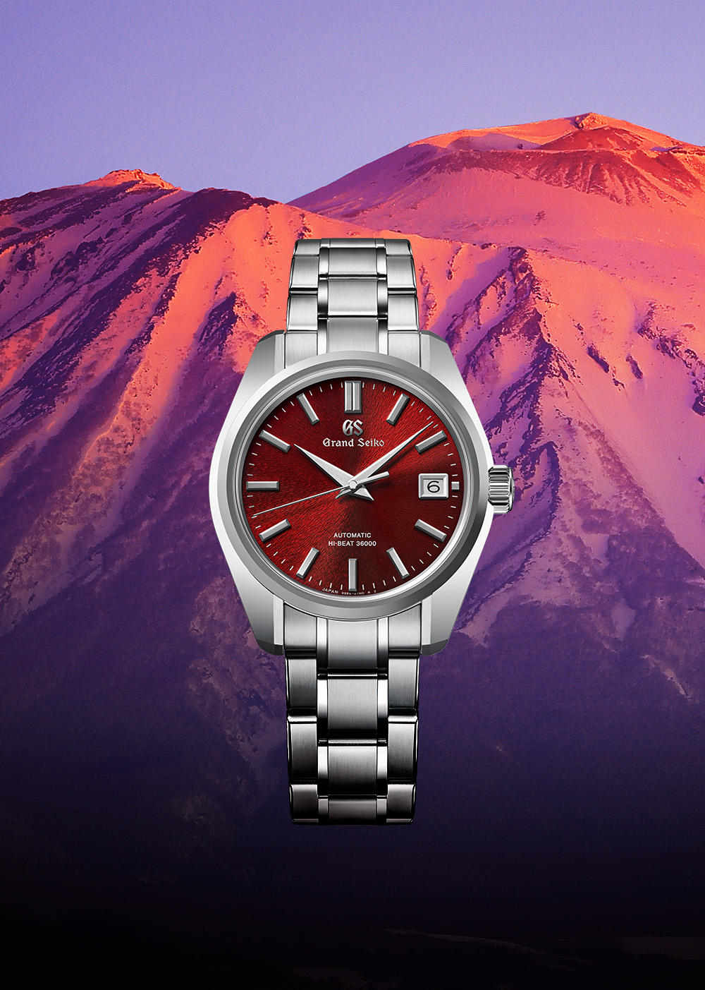 A major inspiration for Grand Seiko is the beautiful scenery of Japan, a source that lends the company’s designs a special kind of uniqueness. The dial of this model is no different, evoking a beautiful tapestry woven by nature. Taking its inspiration from Mt. Iwate bathing in the sun’s red morning light, the dial expresses the rays falling on the majestic peak, which can be seen from the Grand Seiko Studio Shizukuishi, the home of Grand Seiko mechanical watchmaking.