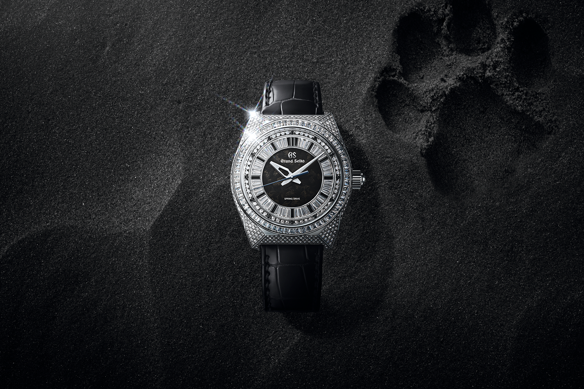 The watch’s inspiration, the lion emerging from the darkness, is expressed through the over 600 diamonds that adorn the case, dial, bezel, and crown to create a powerful and imposing presence. The pavé setting delivers a radiant sparkle along the ridges, highlighting the exquisite shape of the case. This brilliance is further enhanced by setting the diamonds side-by-side with black spinels, boldly expressing the concept of light and shadow that is so critical to Grand Seiko design.