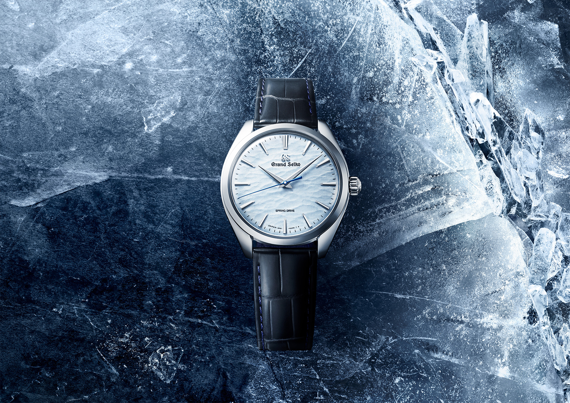 True or not, the legend has inspired the craftspeople of the nearby Shinshu Watch Studio to create a dial of exquisite subtlety for this hand-winding Spring Drive timepiece. It has the color, feel, and texture of ruptured ice on the surface of Lake Suwa.