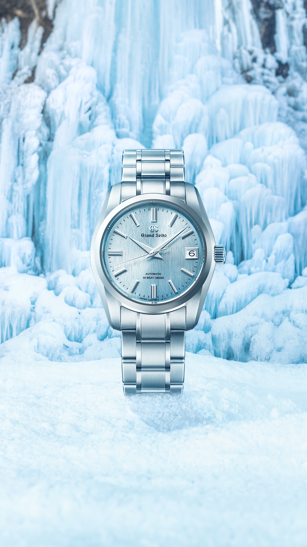 This watch inherits the traditional style of the 9S mechanical series while introducing a new dial expression. Inspired by an “icefall” one might encounter on Mt. Iwate, the peak visible from the Grand Seiko Studio Shizukuishi, during harsh winter months, the dial captures a striking natural spectacle. An icefall occurs when flowing water gradually freezes in sub-zero temperatures. This enchanting scene is expressed through the ice-blue colored dial, which features a pattern balancing dynamism and delicacy. The movement is the Caliber 9S85, a high-frequency mechanical movement vibrating at 10 beats per second within a compact 37mm case. Both the case and bracelet are made of Ever-Brilliant Steel, which shines whiter than conventional stainless steel while offering exceptional corrosion resistance.