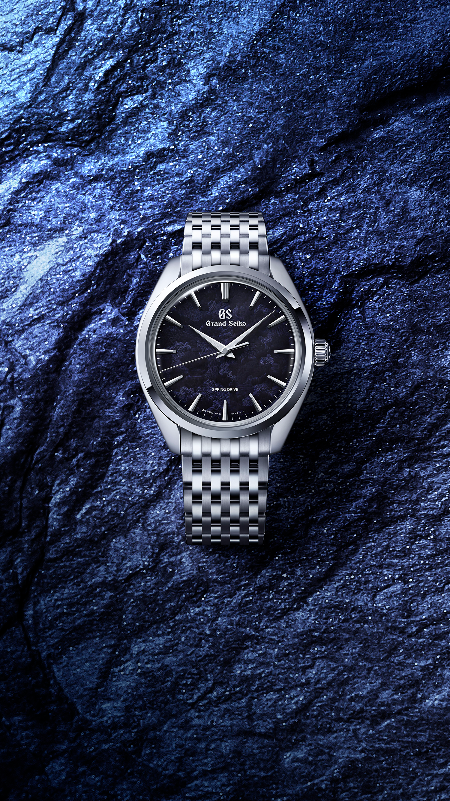 此款腕錶的錶盤結合兩項獨特元素:最深沉的藍靛色調 katsuiro,源自日本靛藍染色技術的發展成果,以及名為 Iwao 的充滿動感圖紋。錶鍊由一系列精緻、圓潤的鏈節構成,完美貼合錶殼纖薄柔和的弧度,隨著手腕律動而流轉,綻放低調光澤。為此腕錶提供動力的是 Spring Drive 9R31 型機芯,採用 Dual Spring Barrel 雙發條盒設計,在完全上鍊時可提供 72 小時動力儲存。透過透明底蓋可清晰欣賞其精緻打磨工藝,以及動力儲存顯示。