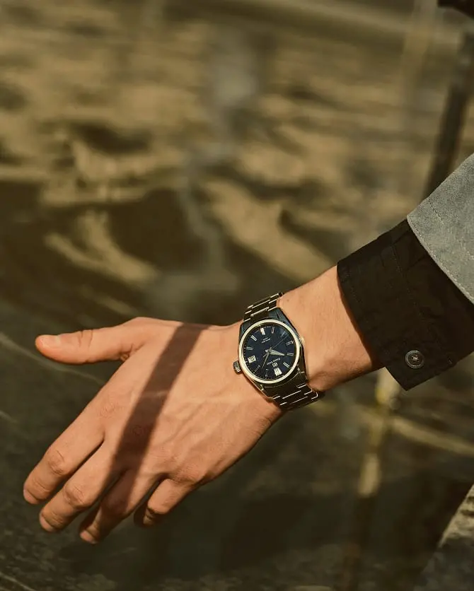 The dark blue dial of the SLGA021 is inspired by Lake Suwa, located southeast of the Shinshu Watch Studio,