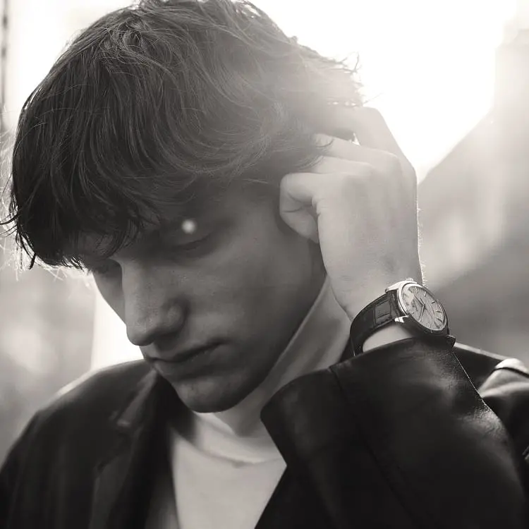 features a blue steel second hand steeped in elegant design.