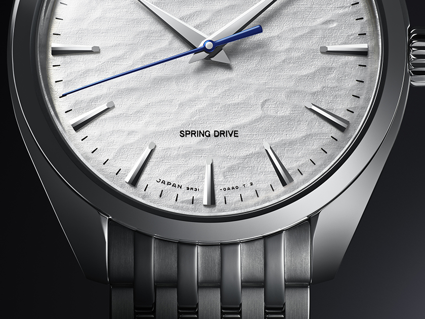 Most winters, the water of Lake Suwa freezes over and, in most years, a long ridge appears in the ice from one side of the lake to the other. Tradition has it that this is the “Omiwatari,” or where the gods walk out over the ice. True or not, the legend has inspired the craftspeople of the nearby Shinshu Watch Studio to create a dial of exquisite subtlety for this hand-winding Spring Drive timepiece. It has the feel and texture of ruptured ice on the surface of Lake Suwa and adopts an ice-like silver tone. The bracelet, which consists of a series of detailed, rounded links, perfectly fits the slim and gentle curvature of the case, moving with the wrist to produce a subtle shimmer. The movement powering this watch is the Spring Drive Caliber 9R31, which uses the Dual Spring Barrel to deliver a power reserve of 72 hours when fully wound. Its exquisite finishing is visible through the exhibition case-back, along with the power reserve indicator.