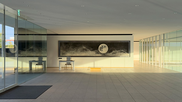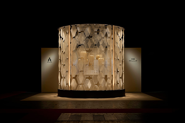 グラデーションの和紙を漉き上げ、紙の薄さと漉き方を微細に変えることで、質感と透過性が生む緩やかな光の生命を表現しました。光の移ろいに応じて表情を変え、静かで流動的なオーロラの広がりを再現。これまでにない和紙の世界で「時」が流れます。