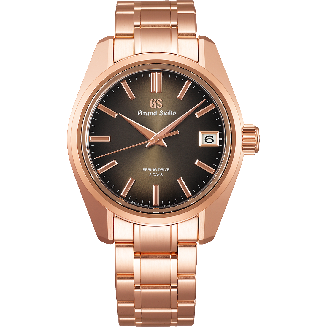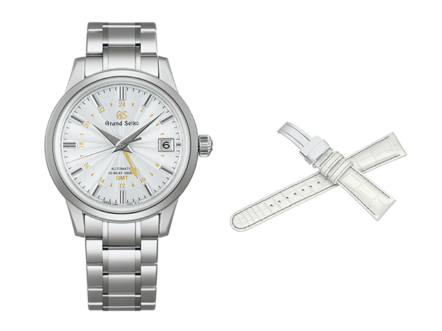 文字盤は、繊細な放射線状の型打ちパターンが生み出す陰影とペールグレーの色調により、輝くダイヤモンドの美しさを表現し、光の角度によって表情が幾重にも変化します。GSロゴやGMT針のゴールド色も華やかさを添えています。