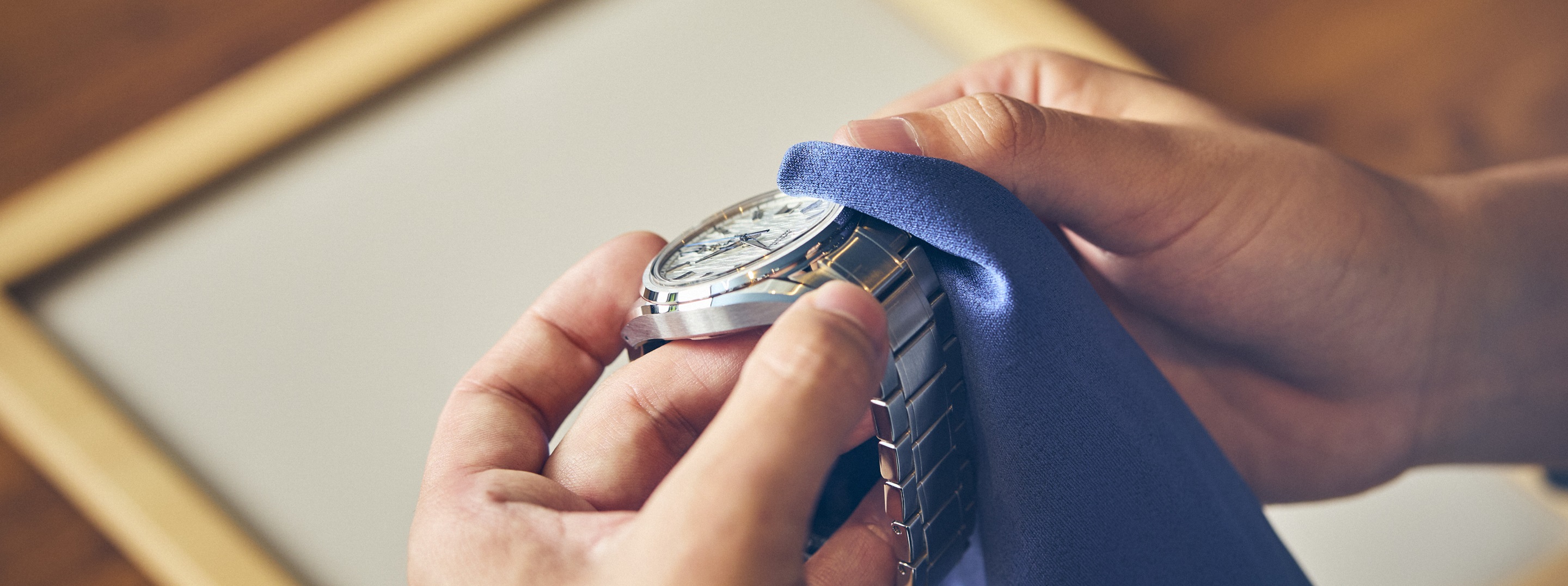 永くお使いいただくためには日ごろのお手入れが重要です。汗や汚れがたまったままの状態が続くとさびの原因となり、防水性能が失われたり、りゅうずやボタンが固着して操作ができなくなることがあります。