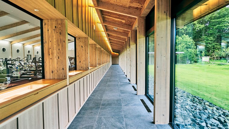 そして第二の目的に挙げた、見学者へのホスピタリティも実現しているといえるだろう。見学者は、まずエントランスに設けられた展示で、ブランドの歴史やムーブメントの仕組み、この地で製造されているパーツや組立にはどのような人が関わっているのかを知り、岩手山を眺めながら、工房に沿った長い廊下のガラス越しに作業の様子を間近に見ることができるのだ。加藤氏は言う。