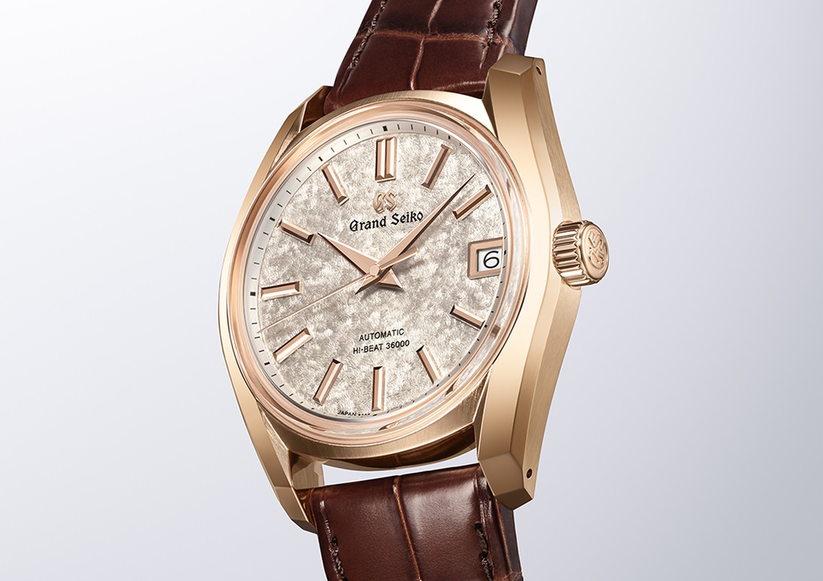 그랜드세이코 최초의 자동 시계인 62GS를 현대적으로 재해석한 이 모델은, 끊임없이 변화하는 일본의 사계 속 아름다운 한 순간을 담아냅니다. 리미티드 에디션이 아닌 62GS 모델로서는 처음으로 18K 로즈 골드 케이스를 적용해 특별함을 더했습니다. 따뜻한 핑크 톤의 패턴 다이얼은 시계의 아름다움을 한층 끌어올리는 광채를 발하며, 벚꽃 위에 눈이 내려앉은 사쿠라카쿠시(sakura-kakushi)의 장면을 표현합니다. 로즈 골드 케이스의 온기와 다이얼의 은은한 반짝임이 어우러져, 이른 봄 아침 햇살 아래에서 눈 덮인 벚꽃이 반짝이는 풍경을 자연스럽게 떠올리게 합니다. 나무 줄기를 상징하는 브라운 가죽 스트랩은 고요하고 평온한 분위기를 완성합니다. 무브먼트로는 하이비트 칼리버 9S85를 탑재해, 정확도 편차를 줄이고 보다 안정적인 정밀성을 제공합니다.