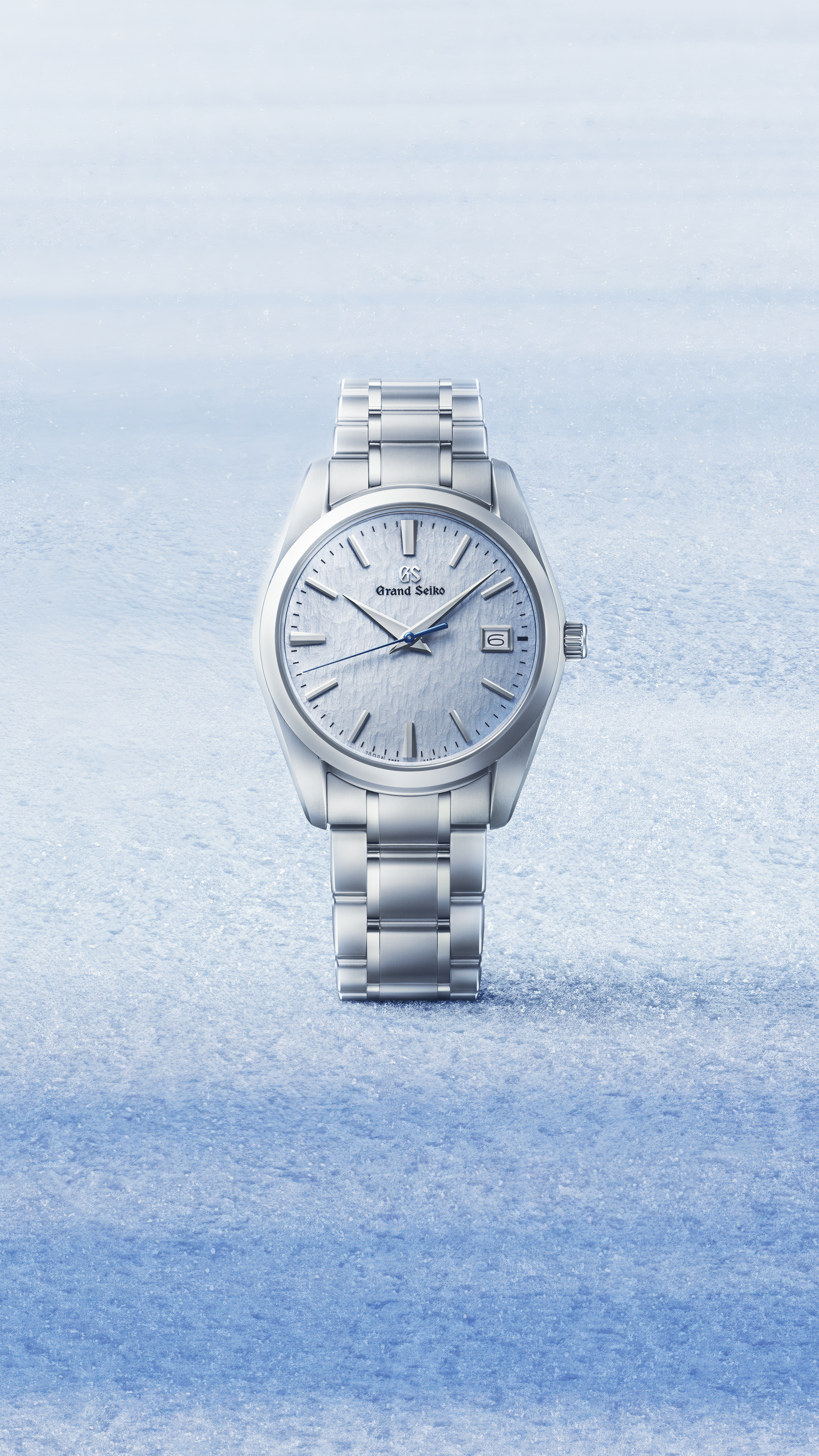The dial pattern of the SBGX357 conjures images of wind-swept snow reflecting the blue sky on a clear, crisp day. This unique appearance is achieved when a light blue color is applied to the delicately textured dial. Below the dial is Grand Seiko’s quartz Caliber 9F62, which is renowned for its high accuracy and robust, dust-proof construction, among its many features. The 37mm case and the bracelet are formed from High-Intensity Titanium, a material 30% lighter than stainless steel with superior resistance to corrosion and wear.