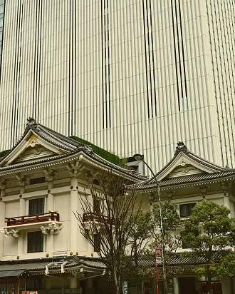Here, we find rows of luxury brand boutiques, flanked by the Kabuki Theater and its centuries-long tradition, along with Sony Park – a building designed to convey newly emerging cultural offerings.