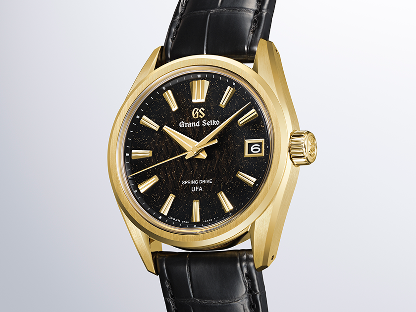 A limited-edition Spring Drive U.F.A. model in 18k yellow gold, with a dial inspired by an “Ice Forest at Dawn”