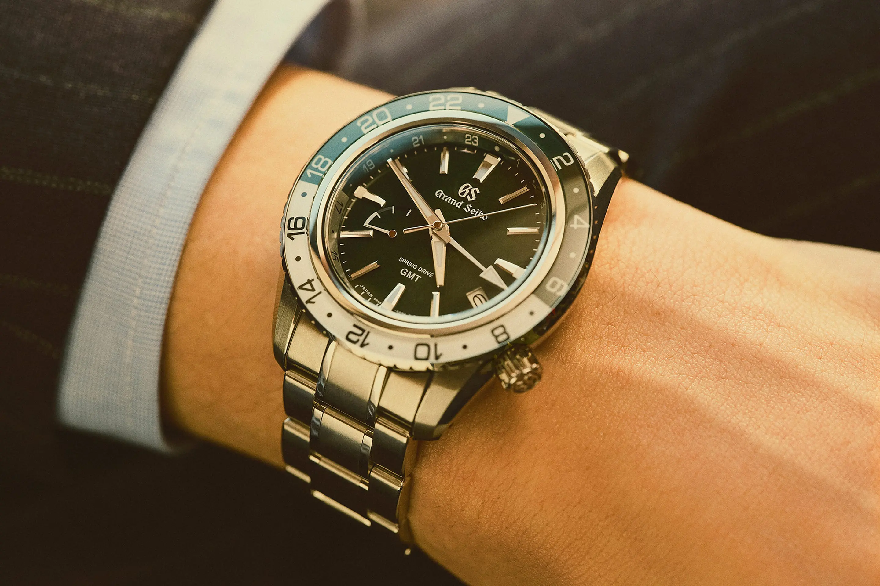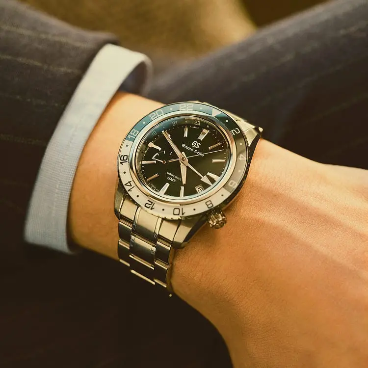Este modelo incorpora o movimento Spring Drive com função GMT,
