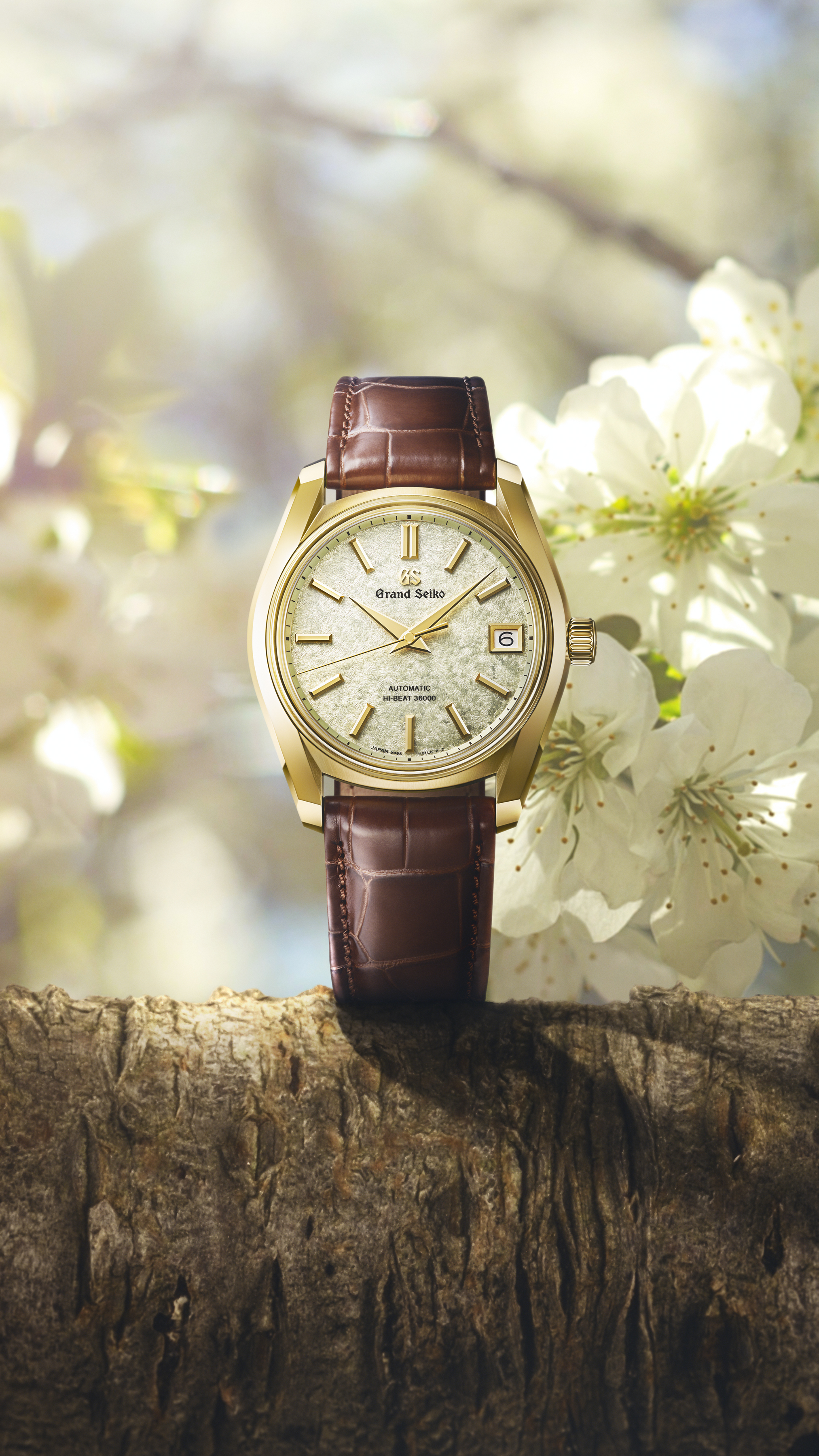 The 62GS debuted Grand Seiko’s first automatic movement. This new creation uses a modern interpretation of the 62GS case design along with a dial that conveys a unique moment in the seasonal landscape of Japan. In a first for a 62GS model that is not a limited edition, 18k yellow gold has been used to craft the case. The dial’s light-green color evokes the budding leaves that follow the cherry blossoms at the end of spring, which glimmer in the light as they reflect morning sun. With its soft comfort and easy wearability, the leather strap harmonizes with the dial’s subtle color to impart an elegant impression. Created by the skilled craftspeople of the Grand Seiko Studio Shizukuishi, the Hi-Beat Caliber 9S85 achieves its stable precision thanks to its high frequency of 36,000 vph.